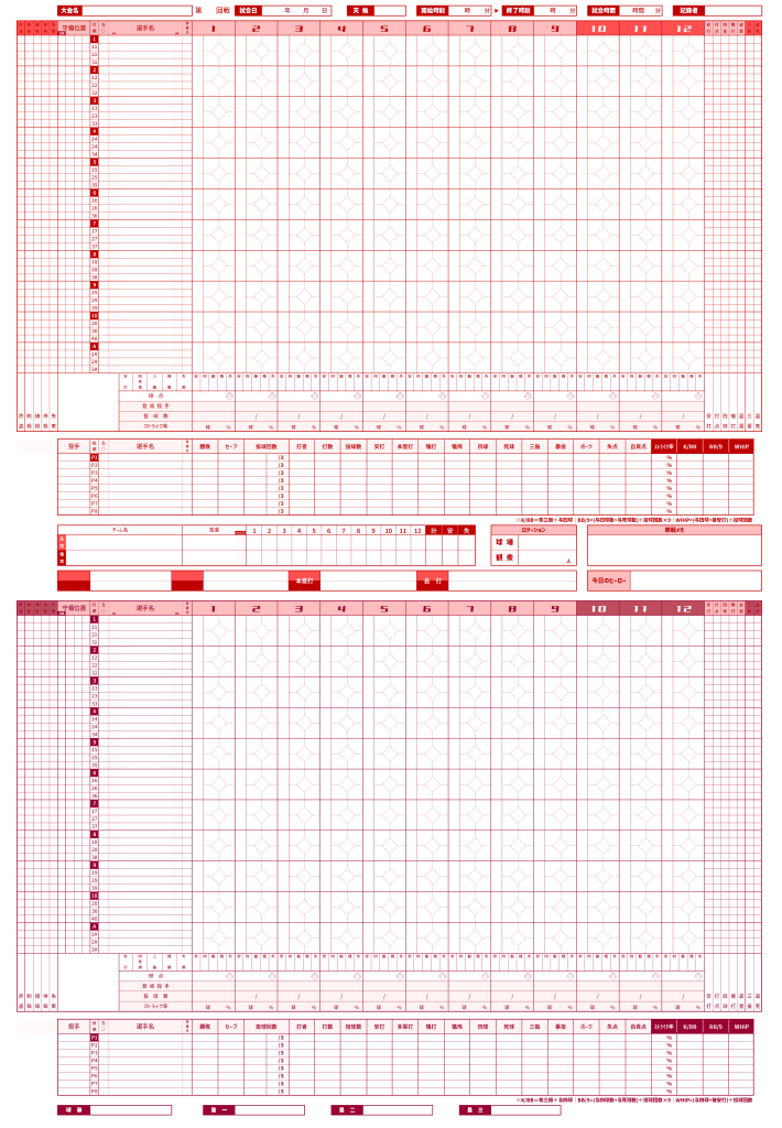 スコアパッド – 03.レッド(赤)vs 06.クリムゾン(えんじ)|先攻